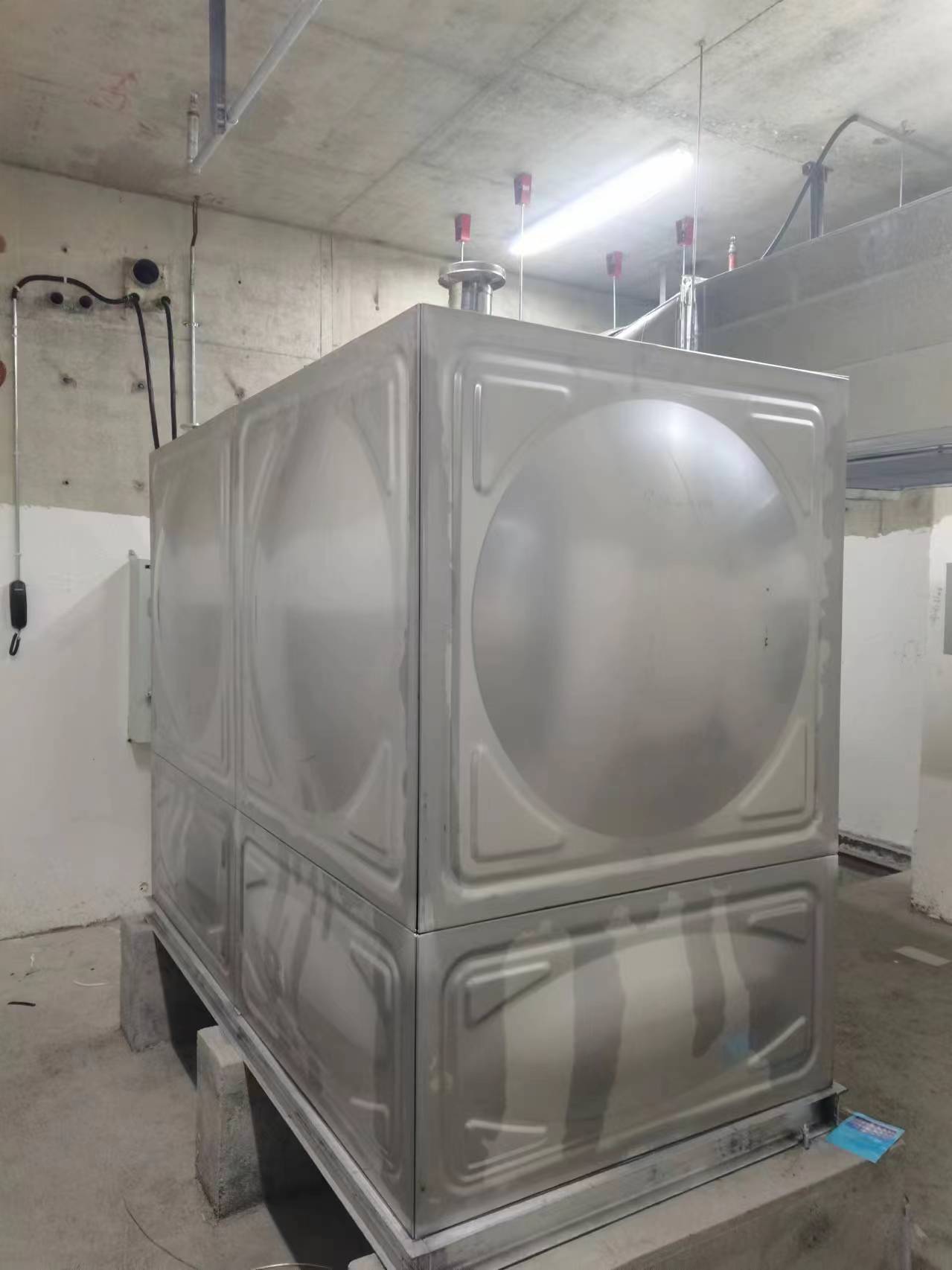 我司承接的河南省商丘市睢陽區吾悅廣場人防水箱項目已完工,此水箱采用的是SUS-304不銹鋼材質。不銹鋼水箱是由單元矩型模壓板制作而成的,通過材料變型的方法達到強度的效果,還可以任意拼裝,利用少的耗材做成完成品,這樣節能又環保。
