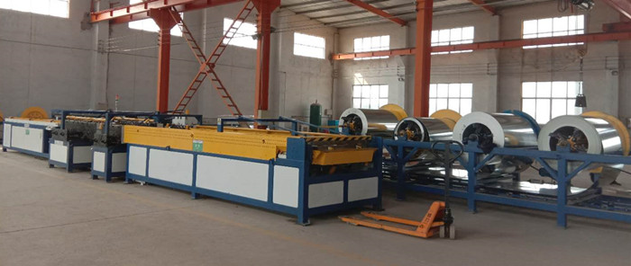 2、角鋼法蘭風管大邊尺寸在630~1000mm時,直接在生產線壓筋加固,排列應規(guī)則,間隔應均勻,板面不應有明顯的變形。
